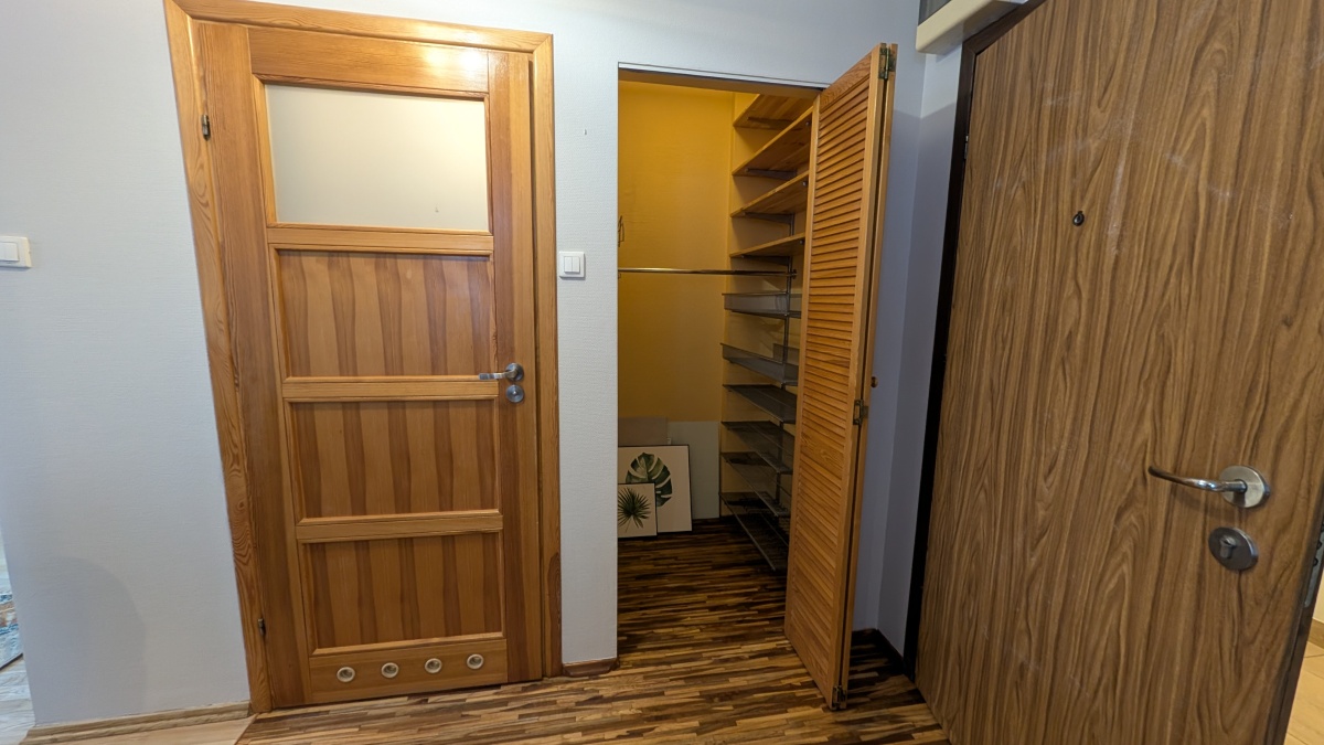 W górnym przedpokoju i sypialni są szafy w zabudowie, a w drugiej sypialni – przepastny schowek.