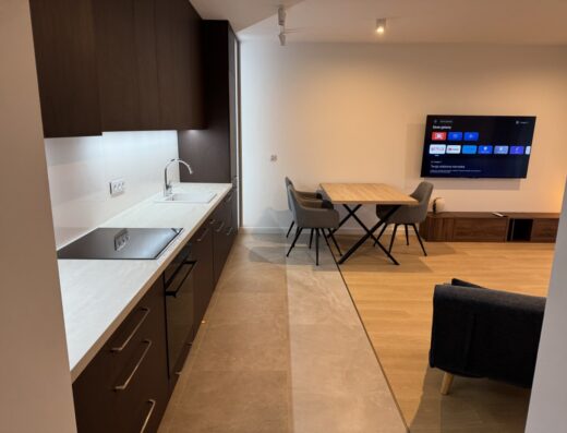 Kuchnia 8 m.kw i łazienka, 2,6 m.kw. nie są wielkie ale doskonale spełniają swoje role. Nie będziecie mieli problemu, żeby z wanny sięgnąć do wieszaka z ręcznikami. A w kuchni, spokojnie zmieści się i On szykujący obiad i Ona, jeśli wpadnie w tym samym momencie zrobić sobie kawę.