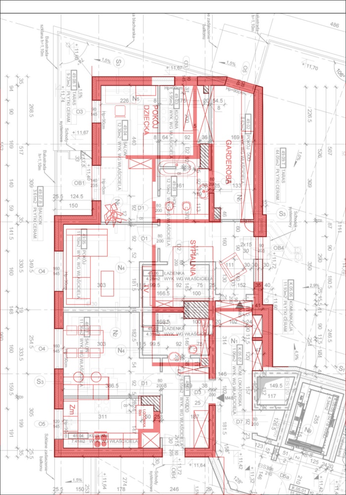 Mieszkanie mieści się na ostatniej kondygnacji pięciopiętrowego bloku.