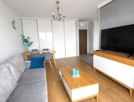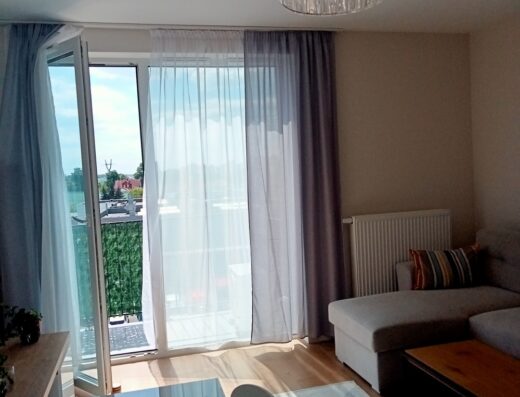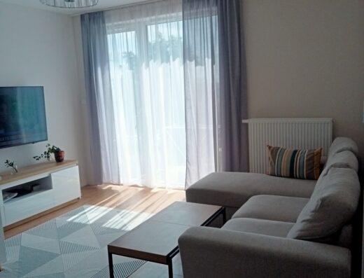 Bardzo ładne mieszkanie z klimatyzacja, Cena 2500 plus media zgodnie z licznikami, dodatkowo ogrzewanie w okresie grzewczym 150, salony aneksem kuchennym, sypialnia z dużym łóżkiem i łazienką z prysznicem, wyposażone w dużą lodówkę. Ogrzewanie na gaz w budynku, kuchenka indukcyjna, w mieszkaniu pralka