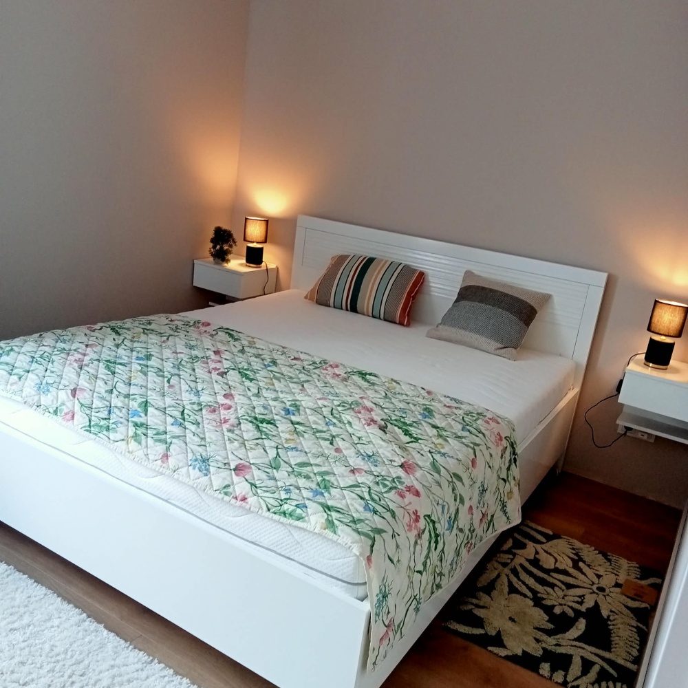 * sypialnia z wygodnym łóżkiem 160×200,szafa i komoda.